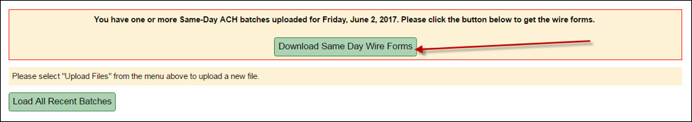 After you have selected your file, click the “Click to Upload” button. If the deposit date in your file already reflects the current date you will be taken to the review screen where your batch will be marked as Same-Day ACH (if you have uploaded your file prior to 1 p.m. EST).